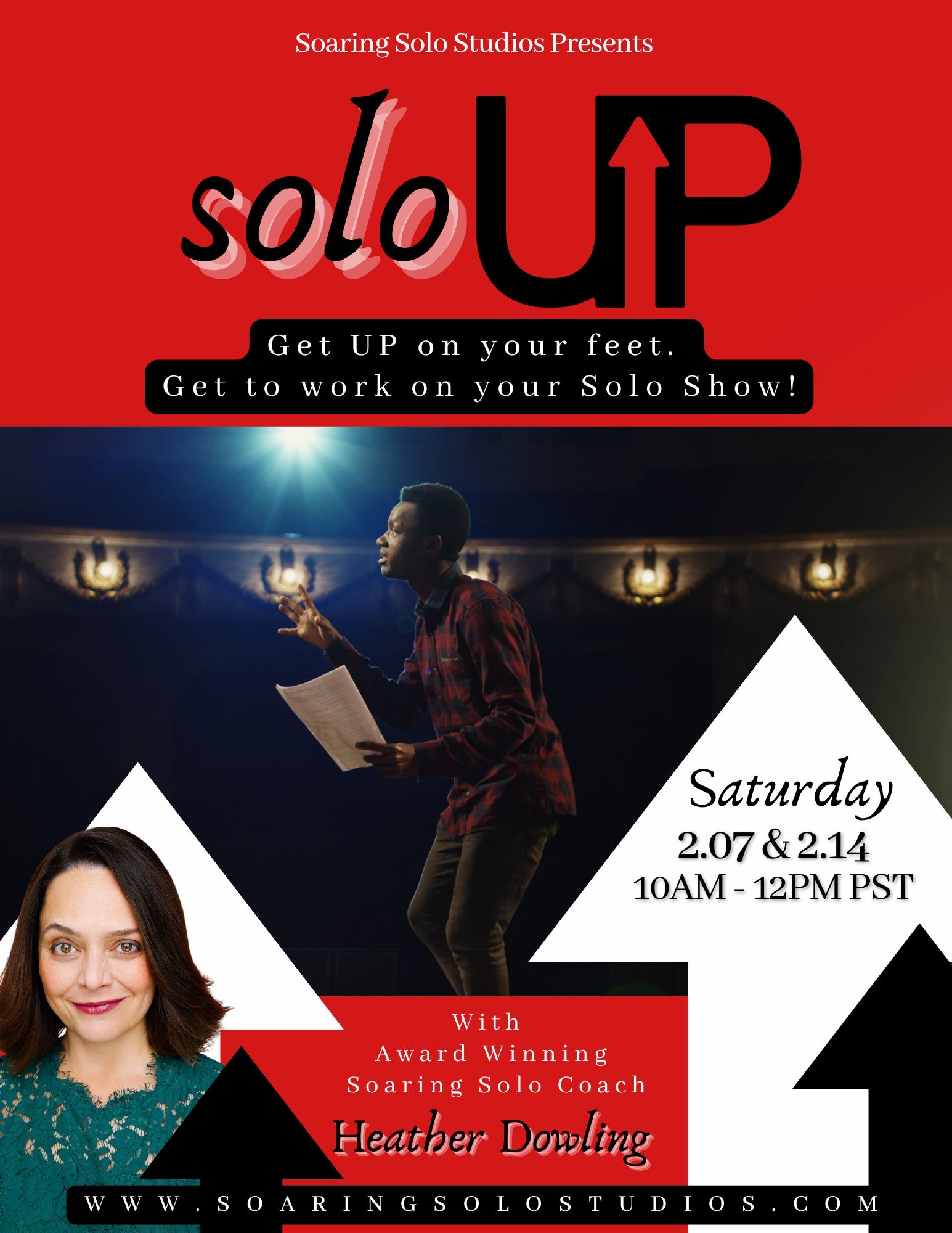 Join Soaring Solo Instructor and award winning Solo Artist & Director, Heather Dowling to get up on your feet IN PERSON and get to work on your Solo Show!
